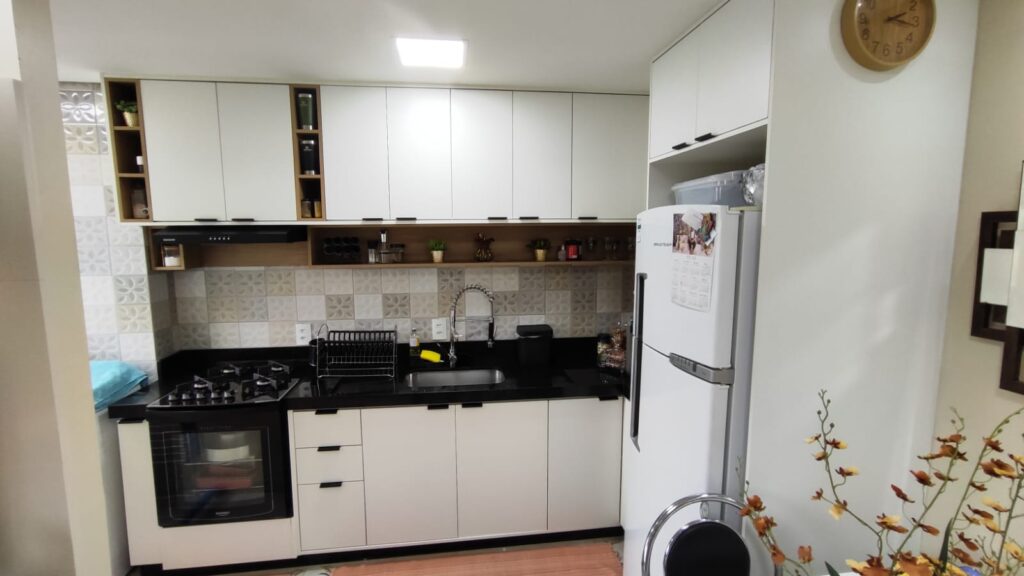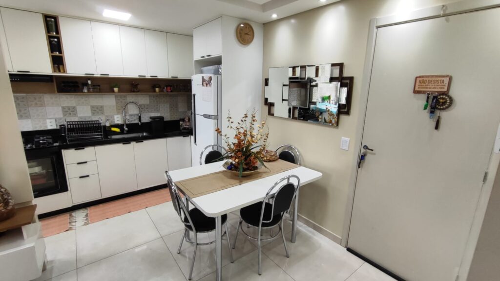 02 dormitórios, sendo 01 suíte, sala, cozinha c/planejados, 01 banheiro social, lavanderia e garagem p/01 carro e moto.
