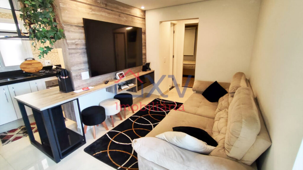 02 dormitórios c/planejado, sala c/sacada gourmet, cozinha c/planejado, 01 banheiro social, lavanderia e garagem p/01 carro e moto.