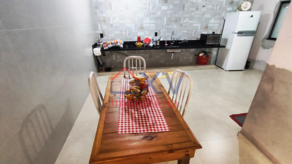 02 dormitórios, sala, sala de estar, cozinha, 02 banheiros sociais, amplo quintal com lavanderia e garagem p/02 carros.