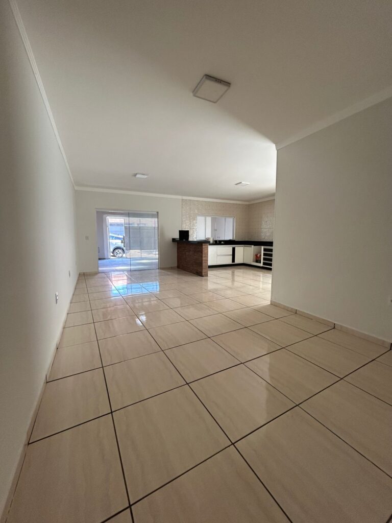 03 dormitórios, sendo 01 suíte,  sala, cozinha, 01 banheiro social, amplo quintal c/lavanderia e garagem p/02 carros e moto.