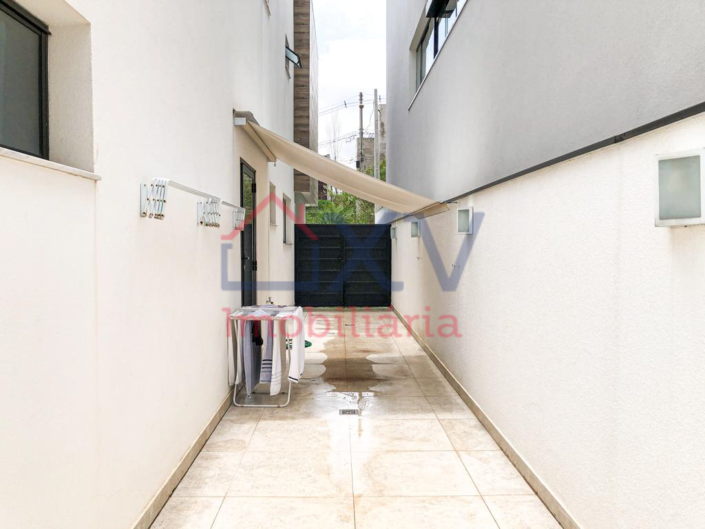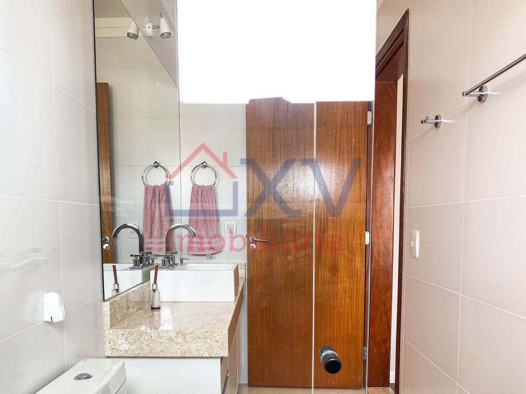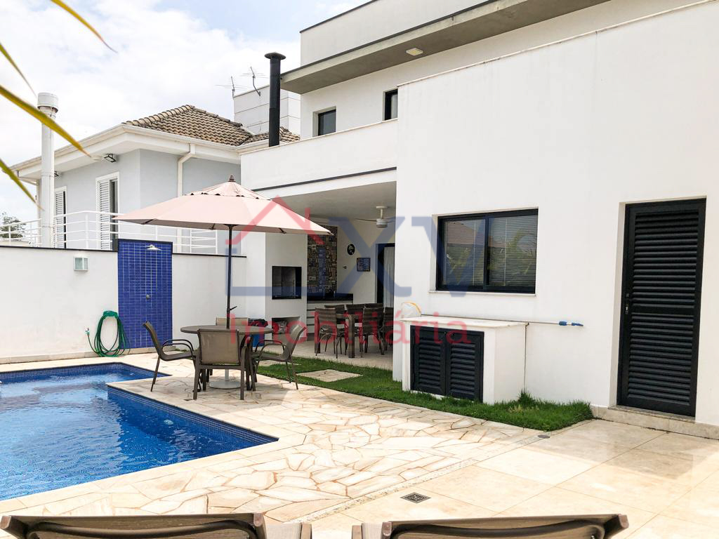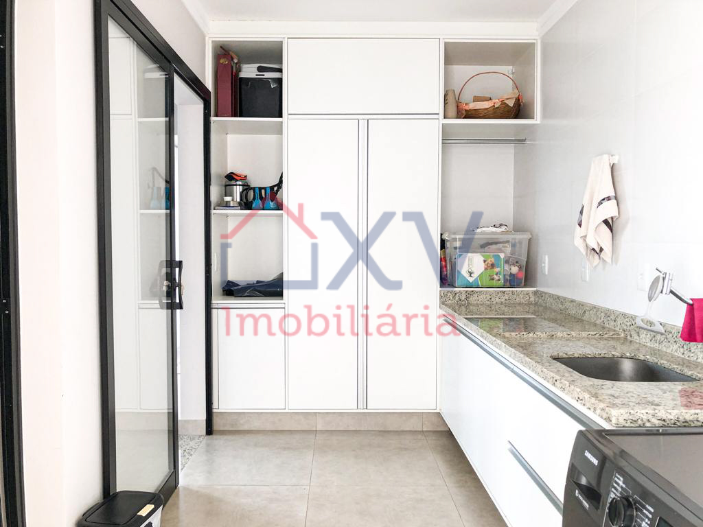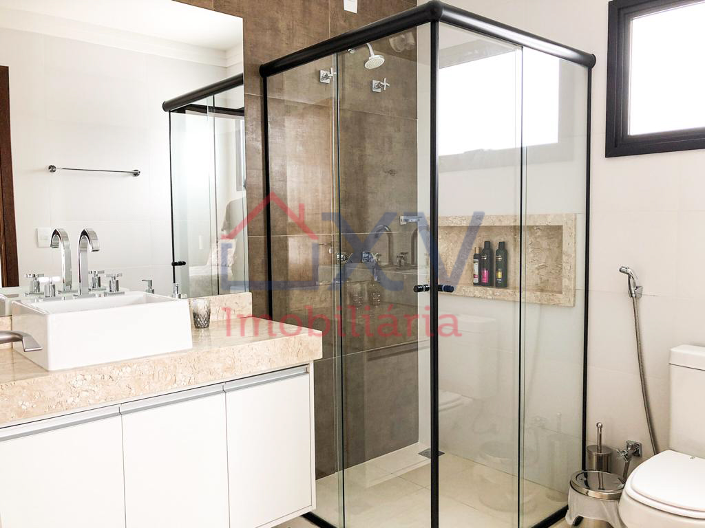 Casa sobrado, sendo 03 suítes com varanda na parte de cima, todas com móveis planejados. E, na parte de baixo, sala de estar com pé direito duplo, sala de TV, sala de jantar, w.c, cozinha, dispensa, lavanderia, corredor lateral e uma área de lazer com piscina e churrasqueira e W.C.